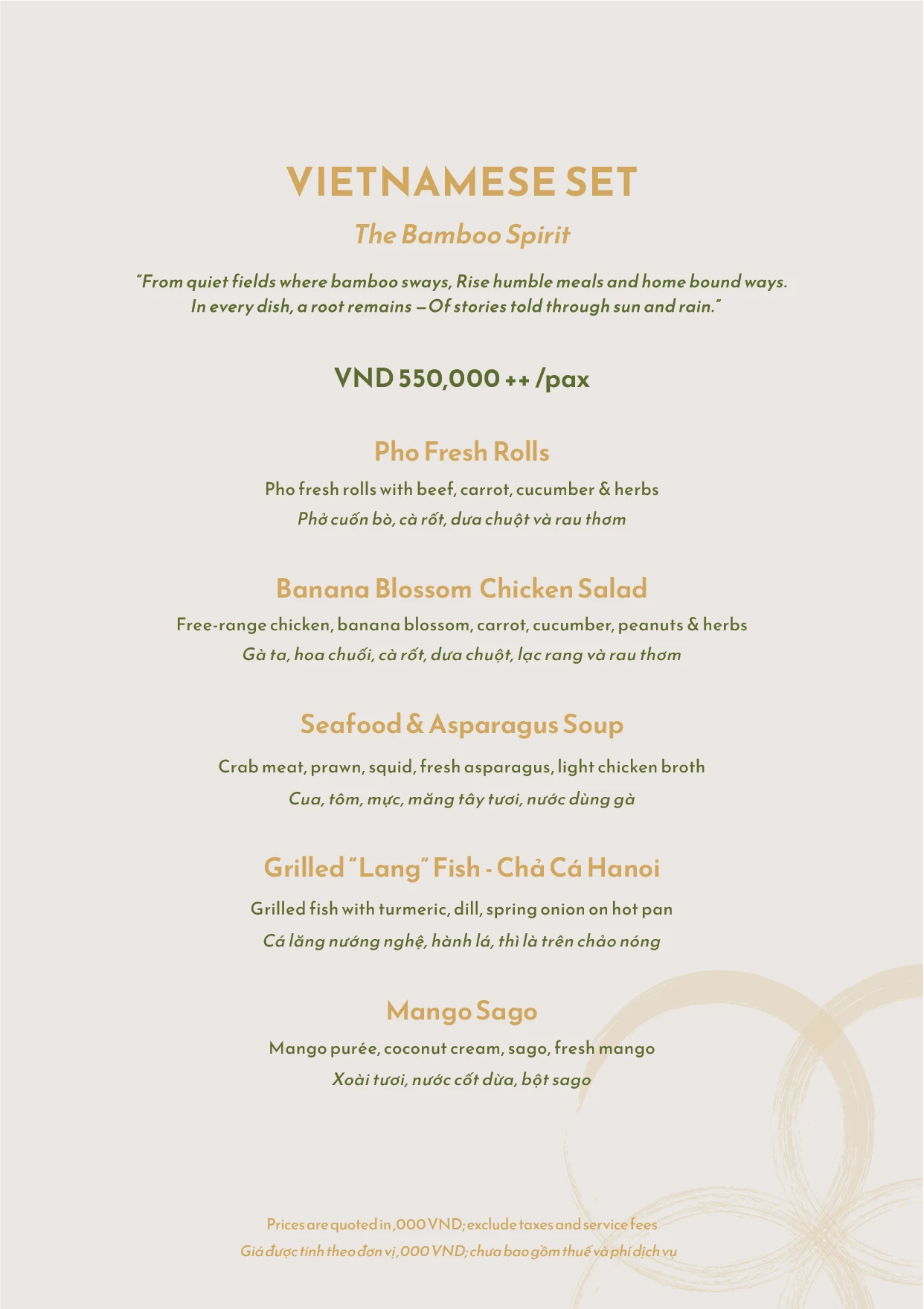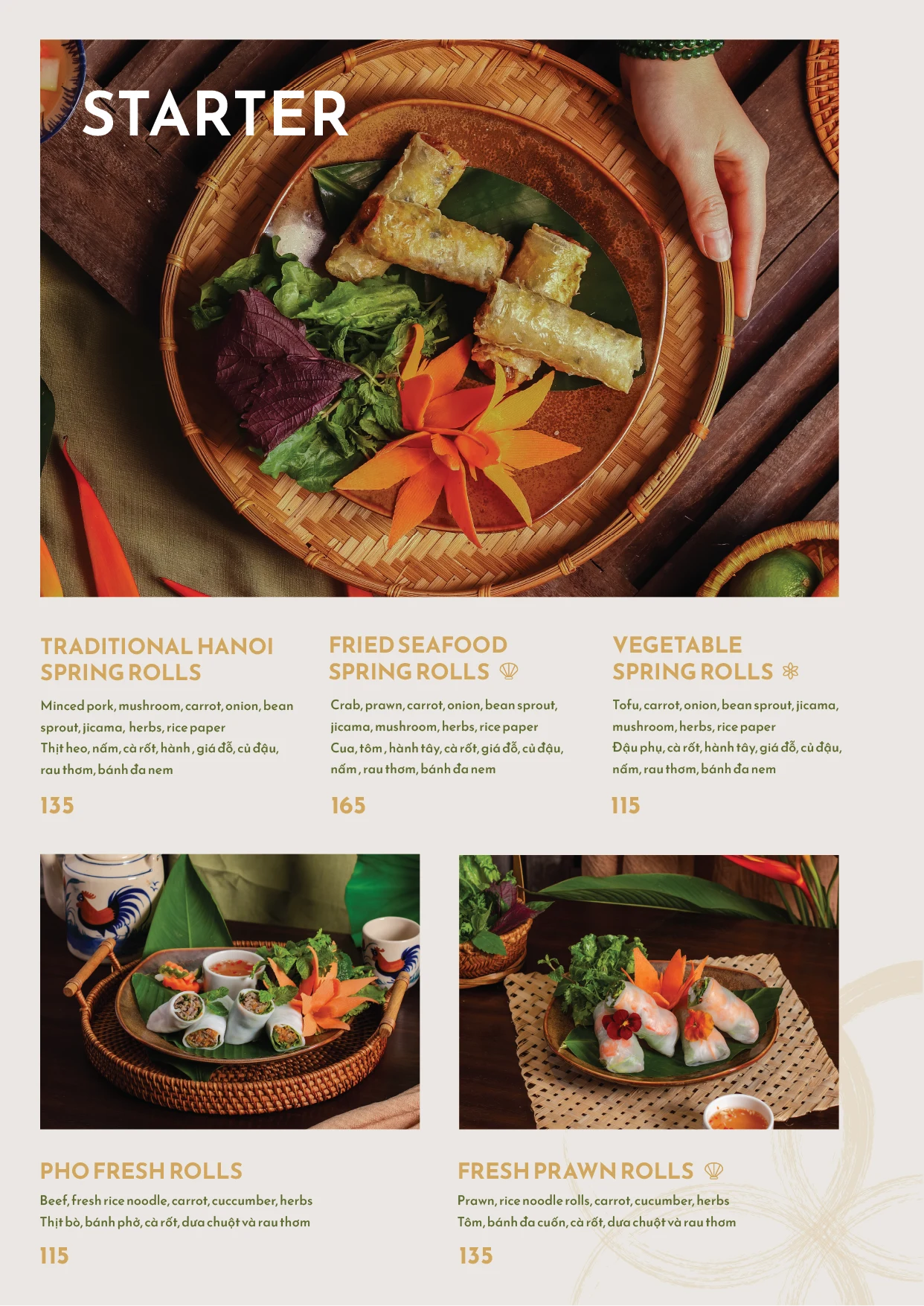 Named and inspired by a traditional culture with a history of development spanning nearly 400 years, at May Tre Dan restaurant, we are not just a place to savor cuisine, but a journey deep into the heritage of each region in Vietnam. Here, every detail, every dish tells intriguing stories and ignites curiosity about the diverse culture of the S-shaped country. Ultimately, it is a hopeful aspiration for the beautiful cultural essence of Vietnam to leave a lasting impression on international travelers