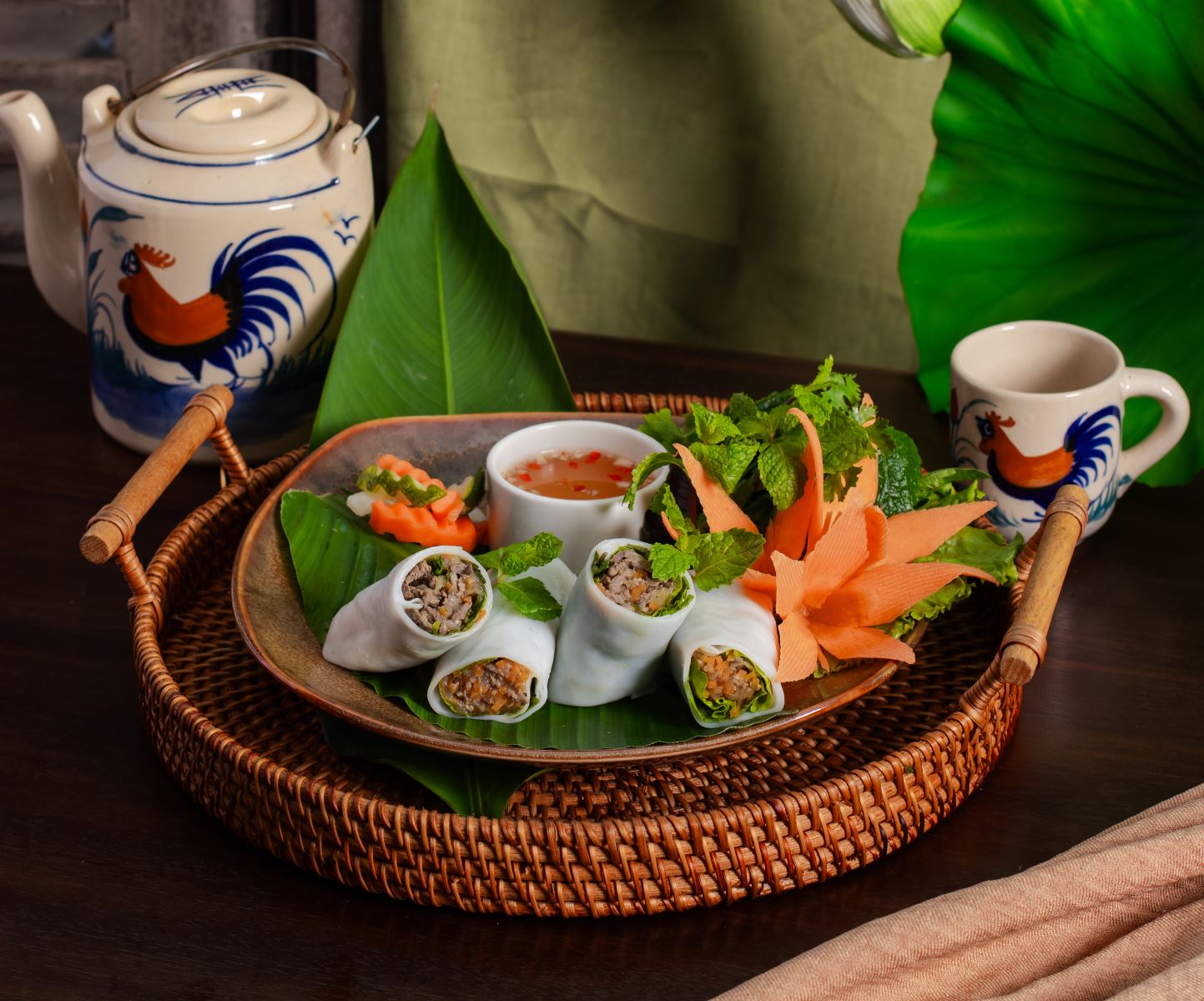 Soft rice noodle sheets are used not in soup, but to wrap stir-fried beef and herbs into neat, bite-sized rolls. Served with a sweet-and-sour dipping sauce, pho rolls are light, flavorful, and a creative twist on traditional ingredients. Perfect for sharing on a hot day.