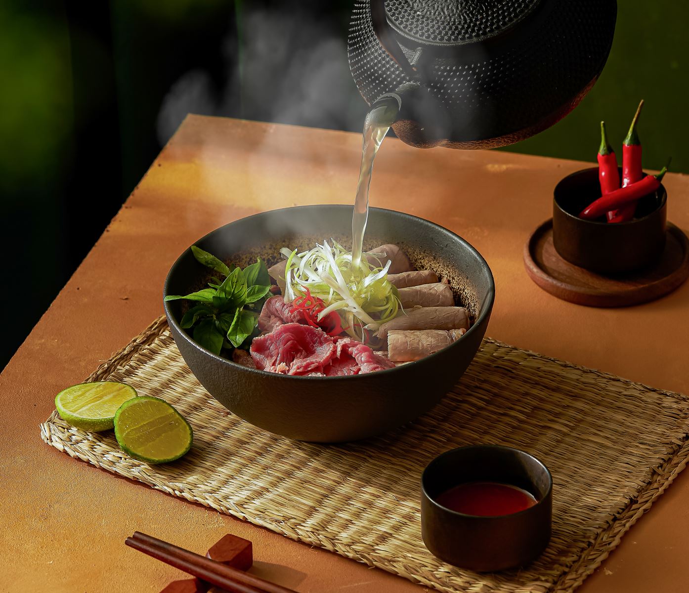 What makes Hanoi-style pho special is its crystal-clear yet deeply flavorful broth, simmered for hours from beef bones. Thin slices of beef, soft rice noodles, fresh herbs, and a squeeze of lime — all come together in perfect harmony.